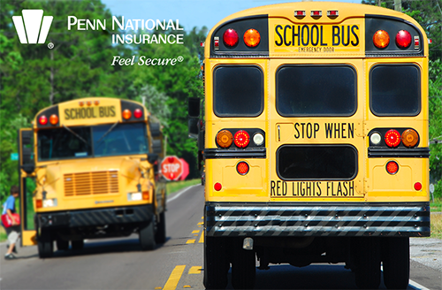 Approaching a school bus stop? Never pass a bus loading or unloading children. (Download Image)